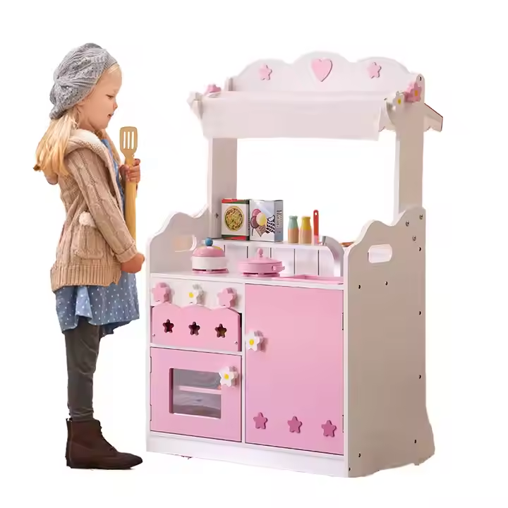 Jucăria de bucătărie dublă, dimensionată la 42,5*60*97cm, prezintă detalii bogate și spațiu suficient pentru a satisface nevoile diverse de simulare a gătitului copiilor.